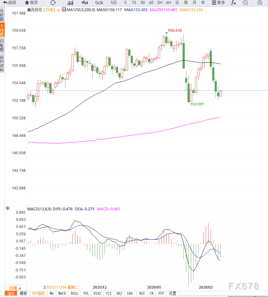 若空头动能延续,不排除向150整数关口回撤的可能。上方阻力首先位于153.50附近,其次为154.20区域。只有重新站稳154上方,汇价才可能扭转当前偏弱结构。动量指标方面,RSI运行于50下方,显示空头占优;