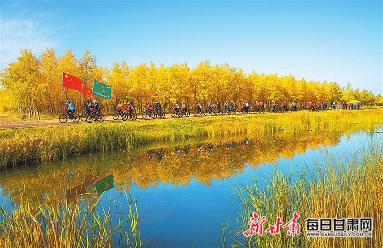 国庆中秋假期,甘州区黑河林场胡杨林迎来众多骑行爱好者。新甘肃·甘肃日报通讯员 杨永伟