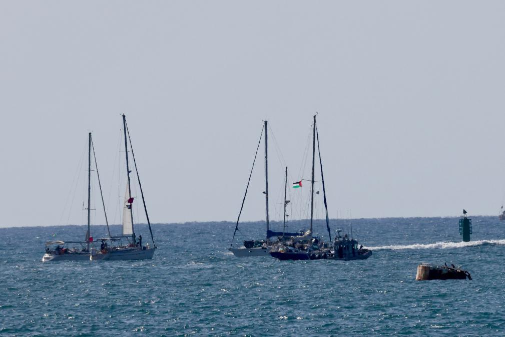 10月2日,在以色列南部阿什杜德港附近,“全球坚韧船队”船只被拖向港口。新华社发(贾马尔·阿瓦德摄)