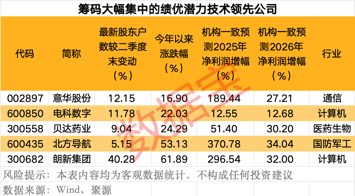 结合机构一致预测数据来看,上述11家筹码集中公司中,股东户数下降幅度超过5%,且机构一致预测2025年、2026年净利润增幅持续超过10%的公司仅有5家。