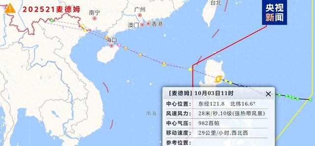 海南省气象局2025年10月3日12时00分发布台风四级预警(海上),请在南海中部、北部作业的海上平台和船只迅速做好避风准备,海南岛北半部市县需立即做好台风防御工作,及时转移危险区域人员,做好旅游、交通等管理调度。
