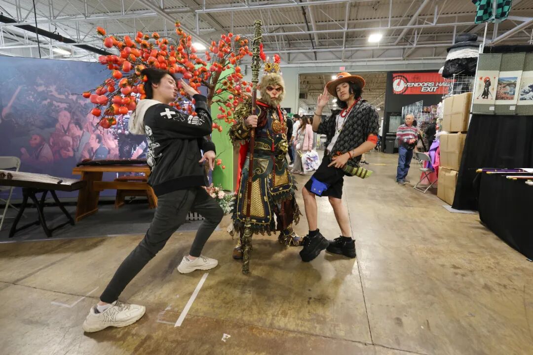 当地时间2025年5月25日,加拿大多伦多,在北美动漫节上,一位动漫coser(角色扮演者)以中国国产游戏《黑神话:悟空》的悟空形象现身,吸引动漫迷合影。中新社记者 余瑞冬 摄