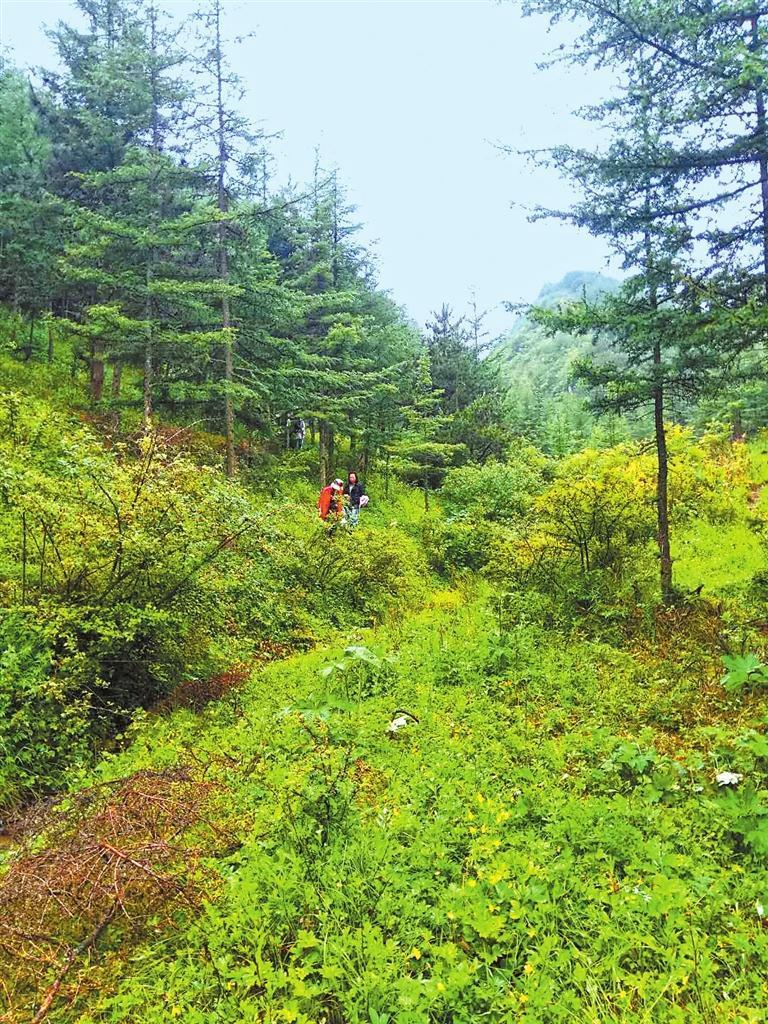 从簸箕湾梁返回到公路上,毛毛细雨飘洒下来。到郑宋村一个大牌子处停下来,牌子上写着“森林防火警示区”几个大字,这儿属于汤家山工区,也是我们穿越莽莽苍苍林场的起始点。同行的李老师取出随身携带的罗盘,指给我看,以此地为中心,左面的水流向黄河水域,右面的水流向长江流域,这里就是秦岭西延段主脉。放眼望去,到处烟雨蒙蒙,云遮雾障,树木繁茂。我弯下腰,看着罗盘和它下面神奇的土地,这就是教科书上的秦岭,中国南北分界线的秦岭,也是秦州人引以为傲的秦岭,现在我要开始用脚步丈量这片土地了。