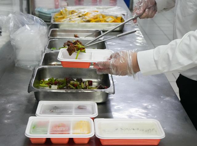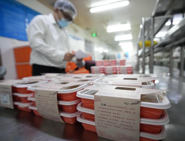 “G337列车今日共配送35份套餐,请您签收。”盒饭整装待发后,被拉到北京西站负一层分拨中心内,再由专人“接力”走专用通道,配送到高铁上。旅客可以登录铁路12306App或在车上扫码下单,也可以直接到列车中部的餐吧购买。
