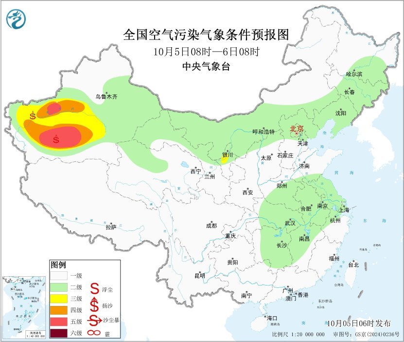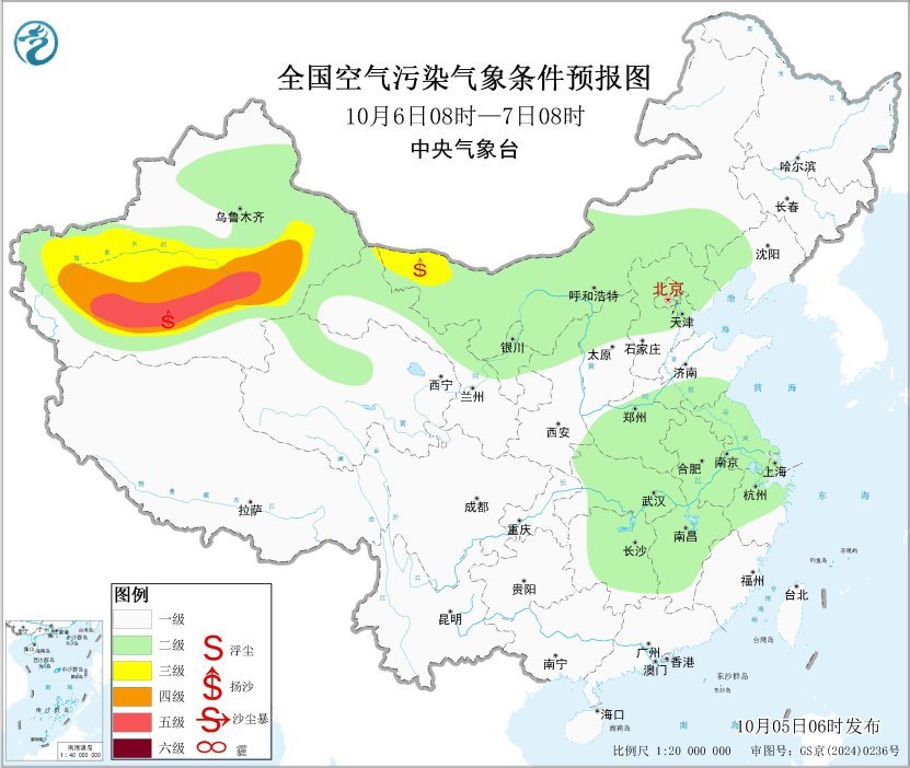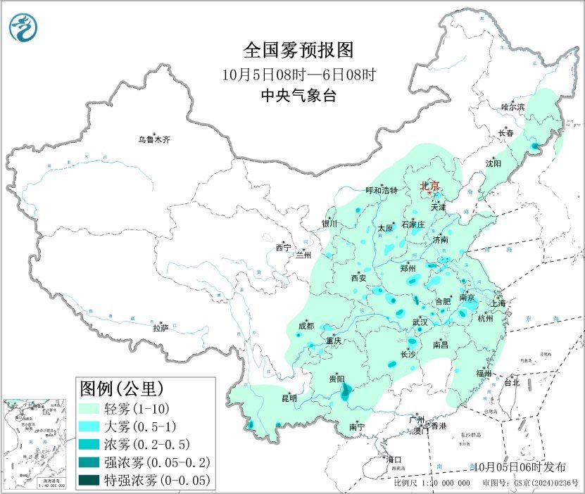 5日早晨至上午,河北中南部、河南中东部、陕西中北部、山西中南部、安徽、湖北等地的部分地区有大雾天气,局地有能见度不足200米的强浓雾。此外,未来一周,全国大部地区大气扩散条件较好。