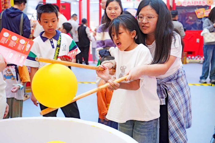 不仅舞台之上精彩纷呈, 舞台之下的互动游戏区更是热闹非凡。“肉丸扭扭乐”“丸在一起”“转移大肉丸”“欢乐投丸站”等游戏,以趣味形式吸引全年龄段参与者。家长与孩子组队挑战肉丸传递赛,情侣在投掷游戏中默契配合,现场此起彼伏的加油声与欢笑声谱写出动人的节日交响曲。