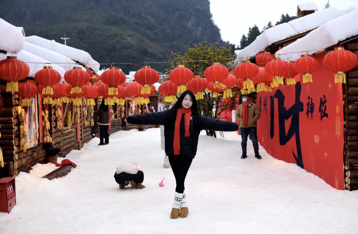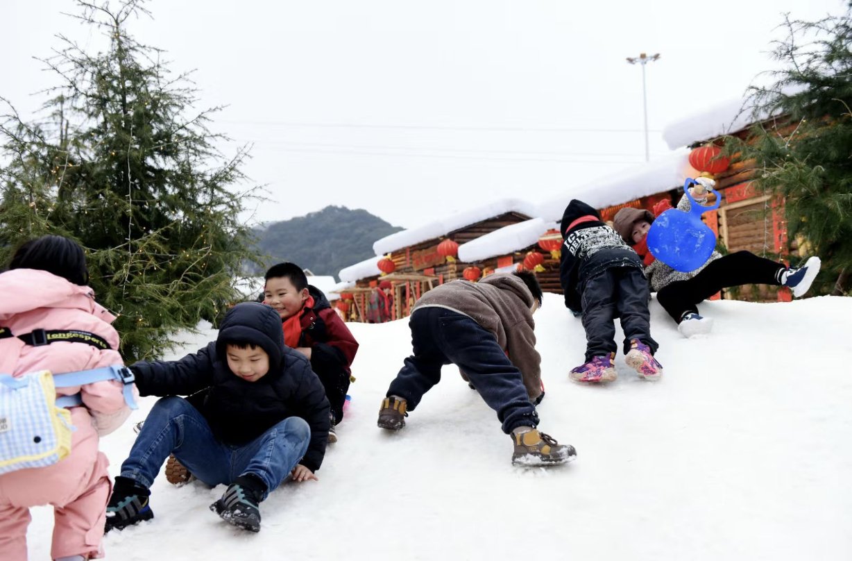 据介绍,今年景区新增的“南国雪乡”主题区以98栋覆雪木屋为核心,将北国雪乡风貌与贵州特色巧妙融合,既是打卡拍照点,也是特色美食商铺的载体。主题区还有吴桥杂技、东北二人转等演艺活动轮番上演,新增的“梭坡坡”雪地滑道成为家庭游热门打卡地。此外,滑雪场还新增了夜滑,雪场沿线新设300余盏路灯,开放时间延长至21点。