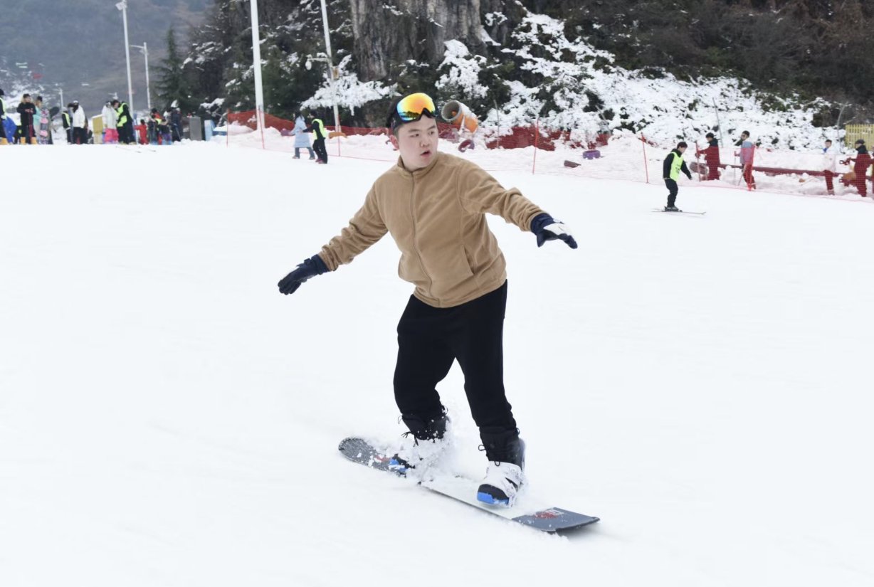 立春已过,气温悄然回升,但贵州六盘水市的梅花山国际滑雪场依旧人气高涨、“雪趣”盎然。