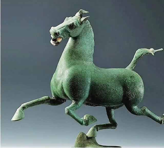 岁月长河中,总会有几颗耀眼的明星。中国几千年文明历史,为后人留下无数珍贵马文物,这其中又以“马踏飞燕”最让人惊叹。它不仅造型逼真,充满动感,艺术水准精妙绝伦,而且背后还隐藏着古代中国不甘落后、勇于拼搏的民族精神。“马踏飞燕”不仅是一件举世无双的文物艺术精品,还是中华民族“奋勇前进”精神的真实写照。