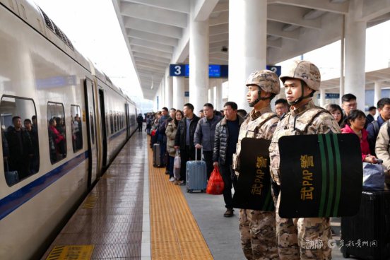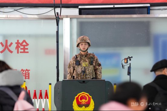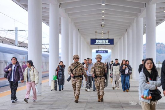 “春节期间,高铁站客流量大、执勤任务繁重,我们在进站口、候车厅和扶梯等重要位置实行全时值守,加强与铁路部门、公安力量的协同配合,严密防范各类安全风险,全力确保车站秩序正规、群众出行安全。”武警贵州总队安顺支队刘伟说。