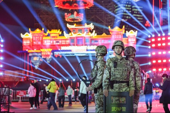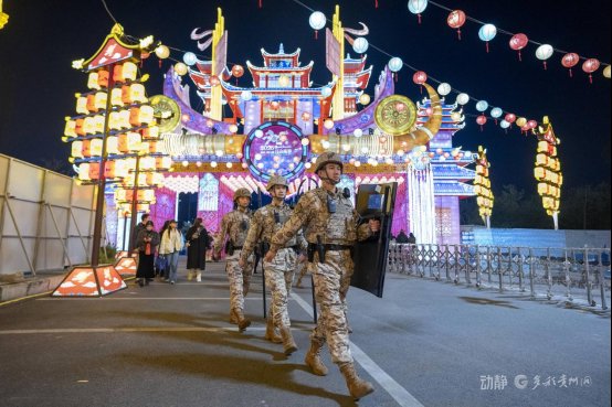 华灯璀璨映盛世,万家团圆守平安。2026贵阳观山湖灯会庙市作为新春佳节期间市民游客争相打卡的文化地标,吸引八方游客纷至沓来。针对园区人员密集、动线复杂的特点,武警贵州总队贵阳支队科学部署执勤力量,在出入口、核心灯区、美食文创街区等重点部位设立固定执勤点,采取定点警戒与动态巡逻相结合的方式,实现防控区域全覆盖。同时,执勤官兵主动为游客提供咨询指引、物品保管、应急救助等暖心服务,用一丝不苟的坚守诠释“人民武警为人民”的初心使命。