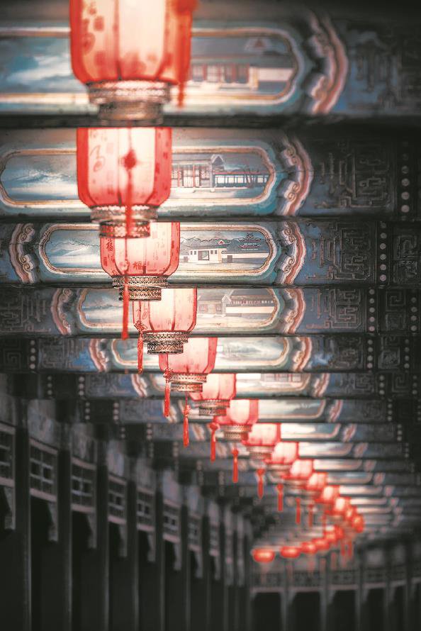 2021年春节期间,颐和园长廊挂满了喜庆的红色宫灯,为首都增加了浓浓的年味儿。夜幕降临,盏盏红灯亮起,与廊间逾万幅经典苏式彩绘彼此映衬,让蜿蜒的长廊更显皇家园林的华美气韵,既烘托出团圆喜庆的氛围,也成为古典园林中兼具传统意涵与视觉美感的标志性景致。