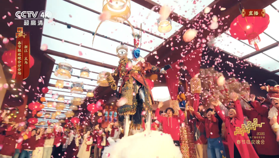除此之外,宇树在义乌分会场的“悟空机器人”,也藏着不少秘密。新浪科技了解到,这款扮演齐天大圣的H2人形机器人,是宇树专门为春晚定制的,身披的战袍、头戴的“雉鸡翎”,都是经过特殊轻量化设计的,既不影响机器人的动作灵活性,又能完美还原悟空的经典形象,而这一设计灵感,让人联想到去年爆火的国产游戏《黑神话:悟空》,显然,宇树科技希望通过这种方式,实现科技与传统文化的深度融合。