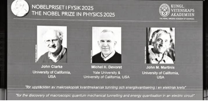 量子力学诞生百年之际,瑞典皇家科学院7日将2025年诺贝尔物理学奖授予约翰·克拉克、米歇尔·H·德沃雷和约翰·M·马蒂尼斯三位量子物理学家。正是他们在前人百年探索基础上的开创性发现,让我们“看见”曾只存在于微观领域的量子现象,也为新一代量子技术的发展奠定了坚实基础。