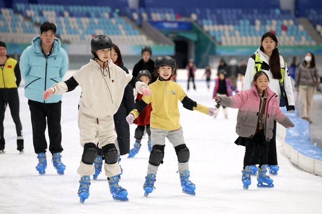 冰面的初级道上,9岁的徐维辰小心翼翼地在教练的指导下向前滑行,一个不小心摔在地上,他立即起身继续练习——这是他第一次滑冰。徐维辰说:“我妈妈希望我能在新年学会滑冰,所以我初一一起床就来了,我觉得还挺好玩儿的。”教练李伟星告诉记者,滑冰近年成为一种时尚的生活方式,特别受到青少年欢迎,“滑冰锻炼身体,也是一项技能,对青少年的成长好处很多。很多家长、孩子都希望在假期走上冰面。咱们‘冰丝带’是世界上最好的冰,在这里带孩子滑冰我也很自豪。”李伟星说。