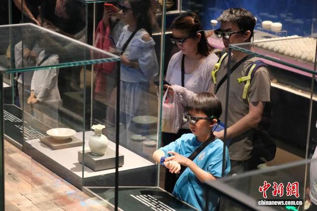 2月19日,游人佩戴AR眼镜了解南宋沉船出土的陶瓷展品。当日是中国农历正月初三,位于海南省琼海市的中国(海南)南海博物馆迎来参观热潮,游人在展品中感受海洋文化的魅力。中新社记者 曹丹 摄