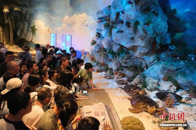 2月19日,游人在海洋生物标本前驻足。当日是中国农历正月初三,位于海南省琼海市的中国(海南)南海博物馆迎来参观热潮,游人在展品中感受海洋文化的魅力。中新社记者 曹丹 摄
