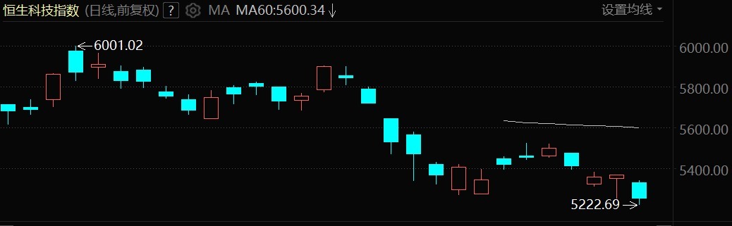 恒生科技指数表现更弱,成为拖累市场的主要力量。该指数开盘报5330.61点,跌幅0.69%,随后跌幅持续扩大,截至9时49分,报5226.42点,下跌141.10点,跌幅达2.63%,盘中最高5341.72点,最低5226.23点。