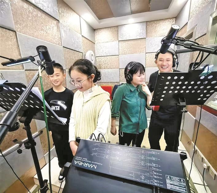 由湖北广播电视台联合五师双河市党委宣传部、五师双河市文联、五师融媒体中心共同打造的广播剧《天山的召唤》录制现场,演员全情投入演绎角色(摄于2025年10月25日)。 兵团日报常驻记者 雷蕾 摄