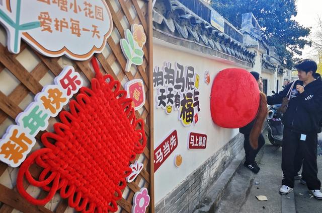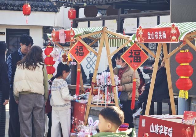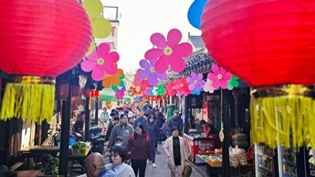 2月20日,金山区廊下镇山塘百米老街变欢乐的海洋。现场,大红灯笼高挂,一排排风车迎风转动,市民游客逛市集,并在“拍马屁”装饰前打卡。每一个人在民俗与乡音里,找到了地道的中国年。