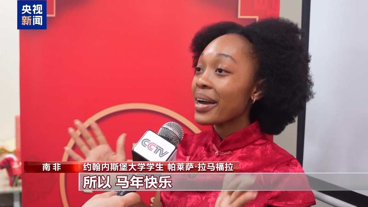 约翰内斯堡大学学生 帕莱萨·拉马福拉:这是我第二次参加这个节日活动,但我觉得这一次是最好的一次,因为我学会了包饺子。我觉得今年一定会是很好的一年,因为今年也是我的本命年。所以,马年快乐。