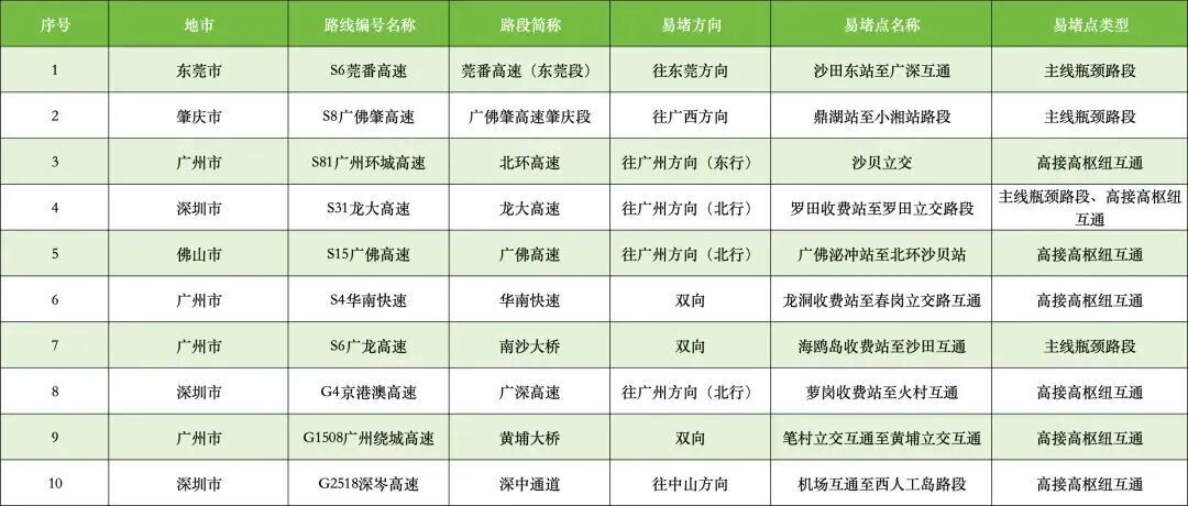 高速公路易拥堵点