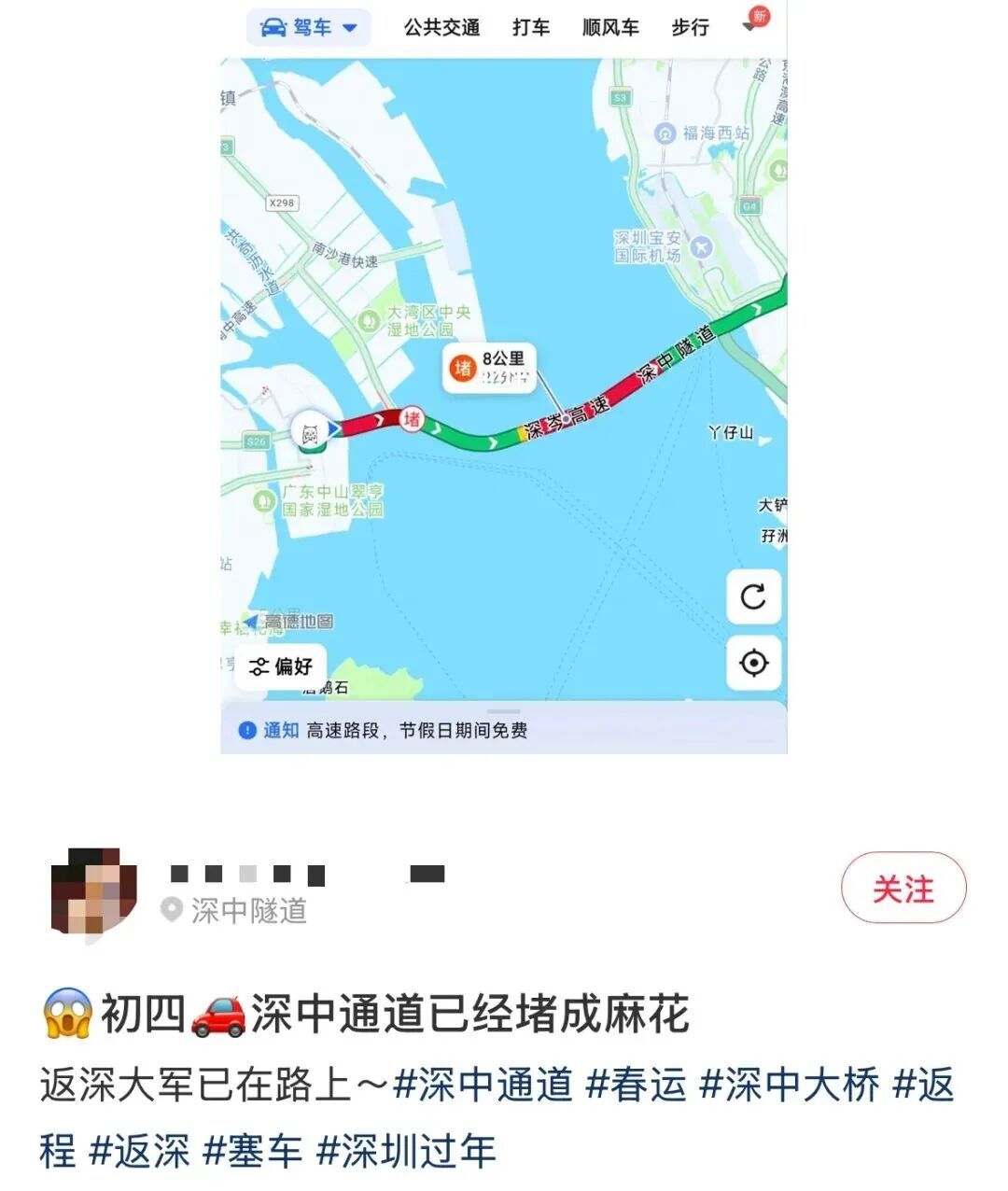 “想着错峰回深不堵车