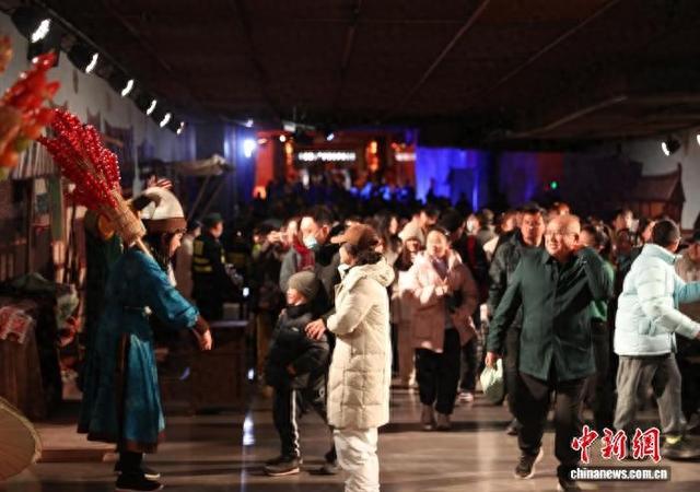 2月22日,宁夏银川,西夏陵景区内,《西夏楽集》行浸式演艺吸引了众多游客驻足体验。中新社记者 于晶 摄