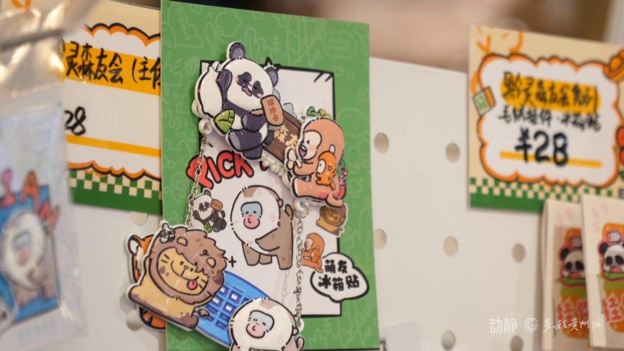公园里的文创店同样人气爆棚。一心不二文创店负责人王彬忙里抽空介绍:“春节单日营收都在两万以上,今年我们推了15个新品,最火的是‘黔灵森友会’冰箱贴,把‘小老费’、小猴子、‘脏脏狮’做成Q版萌粒形象,还能自己DIY搭配。”
