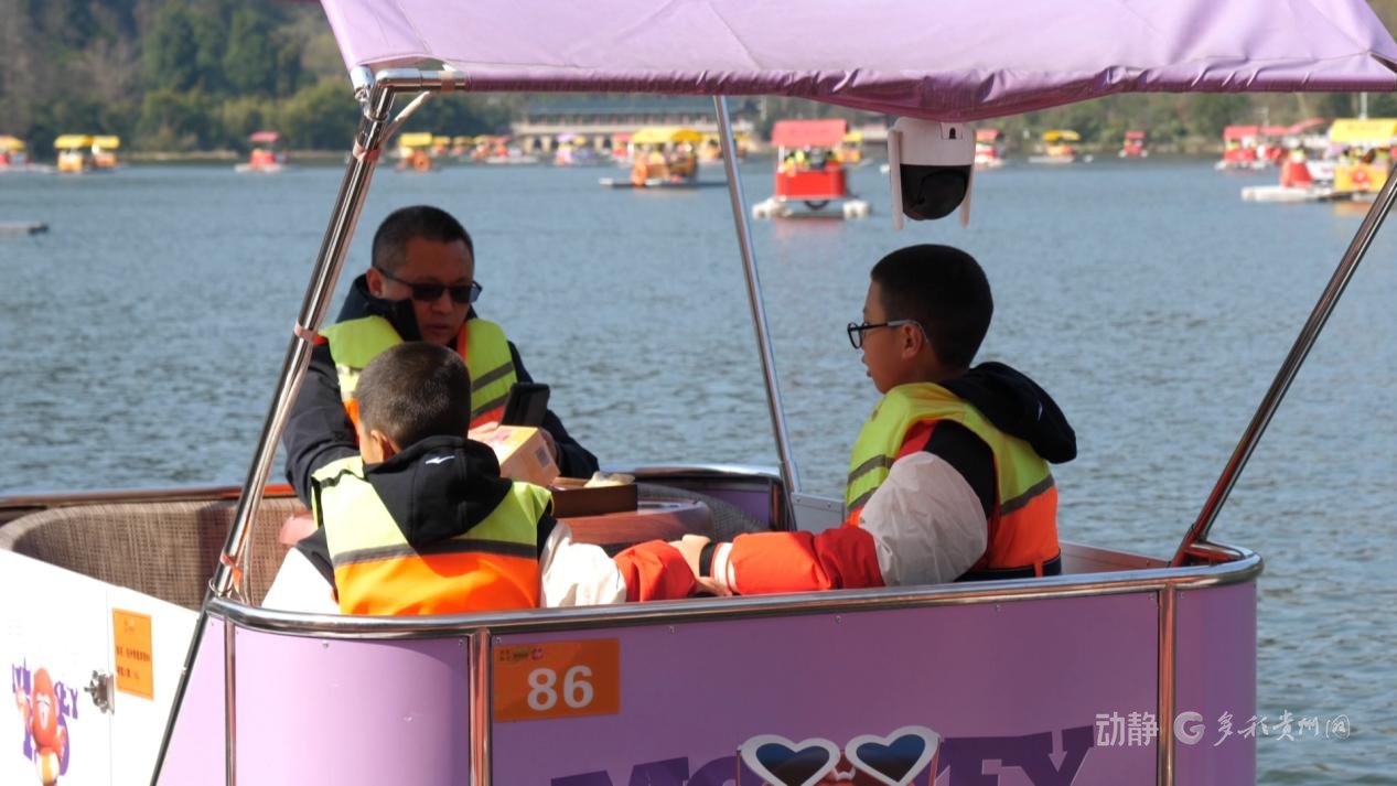 黔灵湖游船是公园内的热门项目,去年,游船进行升级改造,现在调整为全电动,外观设计成“乘猴破浪”主题。春节期间,100艘游船全部投运,工作人员全员上岗。现场负责人张健明介绍:“每天平均接待8000人左右,我们专门多开了一个通道,排队最多十分钟就能上船。湖面上有三艘巡逻艇保障安全,每个出口都有安保人员。”