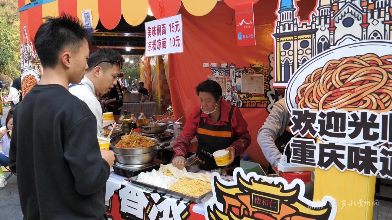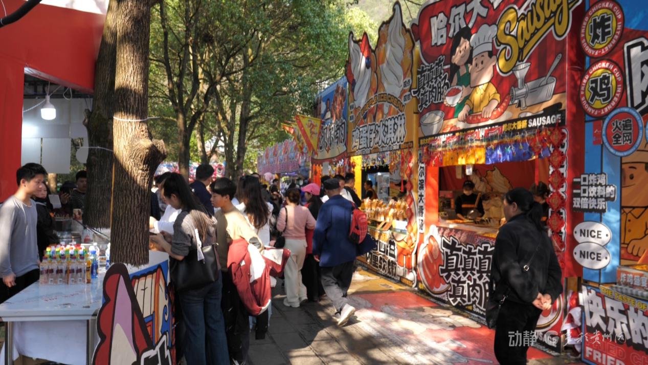 园内多个区域还搭建了新春市集,不少摊位前人头攒动。经营焖面的饶家慧忙得脚不沾地:“过年大家都出来玩了,昨天焖面卖了99碗,2000多块钱,十五块钱一碗,大家吃得开心,我们干得也起劲!”