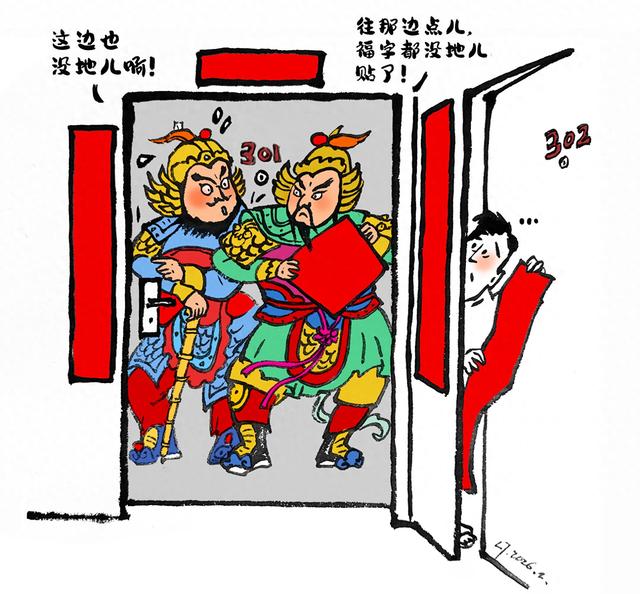 门上贴春联、福字、门神是广为流传的春节习俗,但在城市里,不少居民在贴春联时会遇到尴尬。要么门两侧位置不够只能贴门上,要么福字贴门中央就堵住猫眼,入户门挨在一起的只能抢位置……