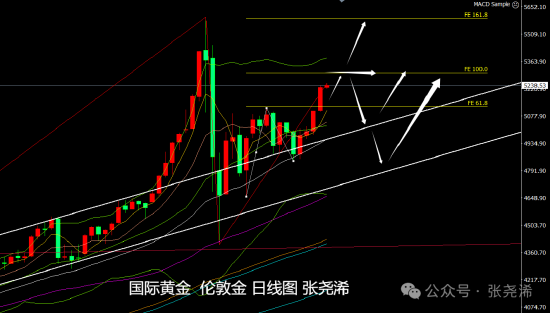 黄金:下方关注5190美元或5120美元附近支撑;上方关注5290美元或5370美元附近阻力;