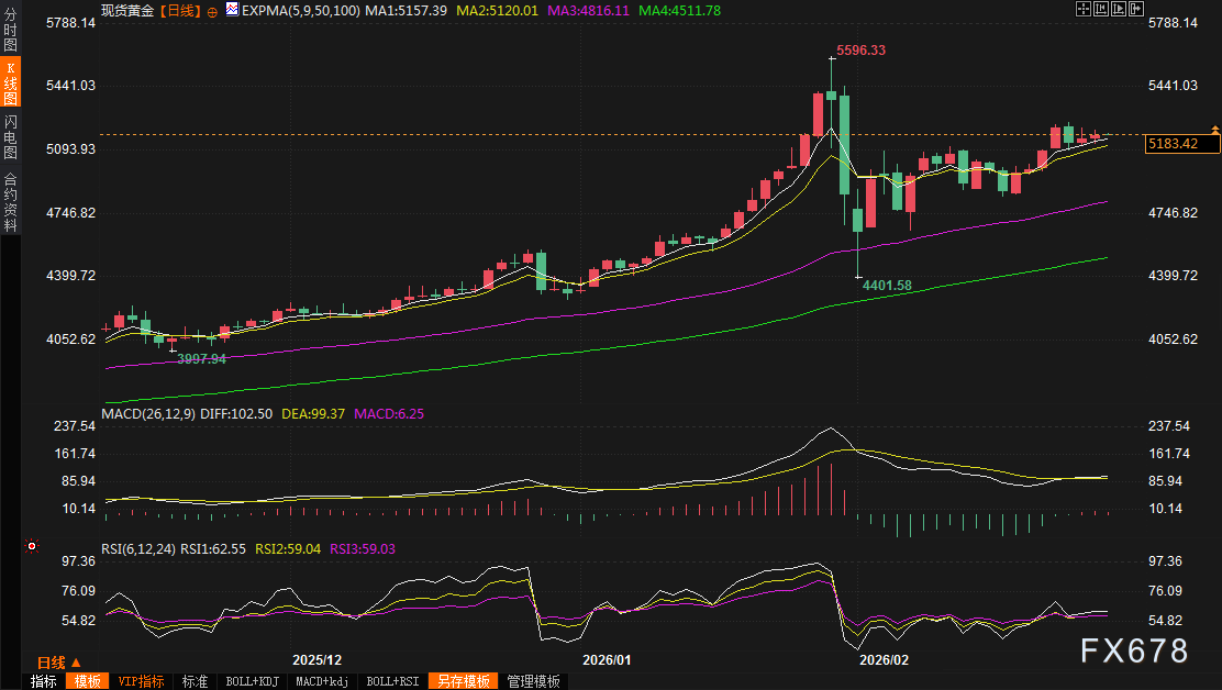 在全球投资者的屏息以待中,黄金市场正经历着一场微妙的平衡游戏。现货黄金周四(2月26日)维持窄幅震荡,收盘微涨0.4%至5183.88美元/盎司,盘中一度跌至5130美元附近但很快受到逢低买盘支撑;而美国黄金期货则小幅收跌于5194.20美元。这一近乎静止的价格波动背后,隐藏着市场对日内瓦美伊间接核谈判的高度警惕——地缘政治的天平任何微小倾斜,都可能引发的剧烈震荡。周五(2月27日)亚市早盘,现货黄金窄幅震荡,目前交投于5184.42美元/盎司附近,