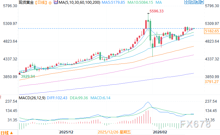 现货黄金日线图 来源:易汇通北京时间2月27日13:24 现货黄金 报 5187.65 美元/盎司