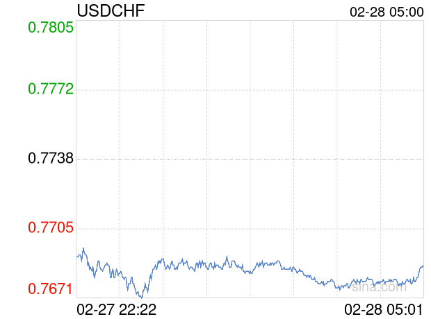 新浪外汇消息2026年02月28日,截至05时00分,外汇市场上美元兑瑞士法郎汇率跌破1美元兑换0.7686瑞士法郎。跌幅为-0.6720%