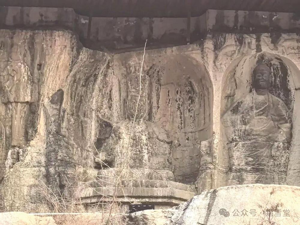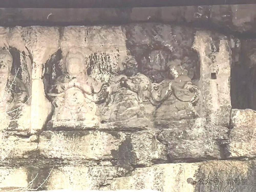 下层两龛,位于上层诸龛的北端,内亦为一佛二弟子像,龛侧雕菩提树及供养人。