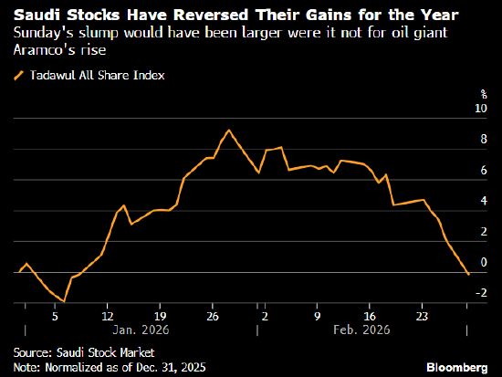 沙特阿拉伯和埃及股市周日下跌,美伊战争对该地区金融市场的首波影响开始显现。