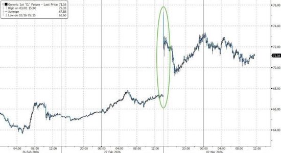 油价的狂飙直接传导至宏观利率预期。投资者担忧,持续高企的能源价格将再次推高通胀。此外据华尔街见闻,美国2月制造业PMI连续两个月扩张,价格指数飙升至近四年新高。