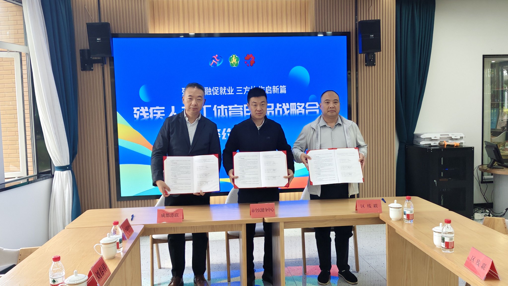 10月21日,成都市全民健身中心与成都市双流区残疾人联合会、成都市双流区港联创新创业服务中心正式签署合作协议。此次合作标志着成都市全民健身中心在以“体育资源供给+残疾人就业帮扶”的创新实践中迈出重要一步,不仅为体育赋能残疾人事业发展提供重要载体、为成都全民健身事业注入民生温度,更为推动“体育+”融合发展提供了“鲜活”样本。