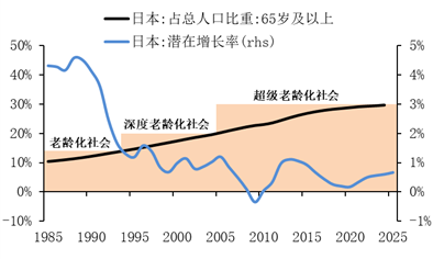 图5:日本潜在增长率与老龄化