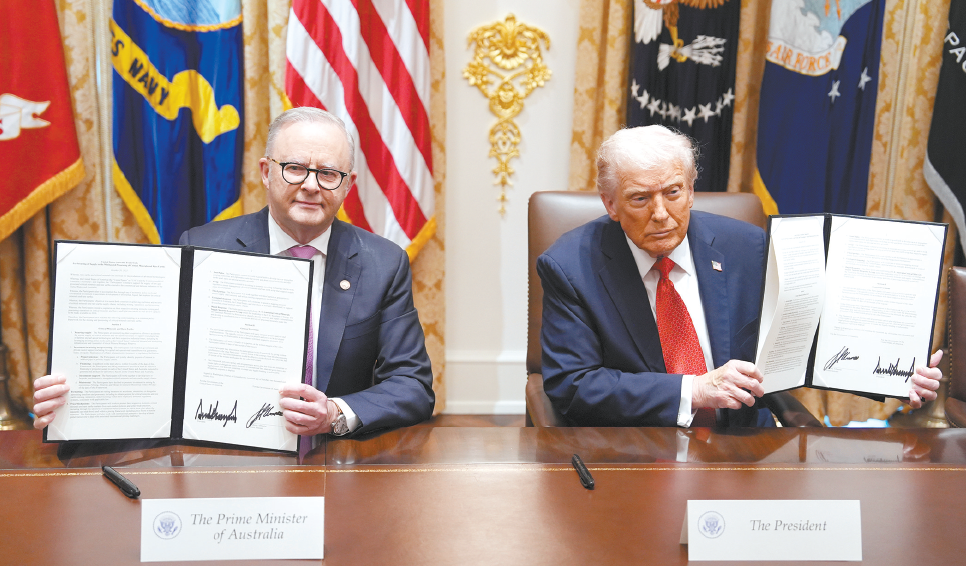 【环球时报驻美国、澳大利亚特约记者 戴润芝 达乔 文远】当地时间20日,正在美国访问的澳大利亚总理阿尔巴尼斯在白宫与美国总统特朗普举行会晤。其间,双方正式签署《美澳关键矿产与稀土开采及加工供应保障框架协议》。根据两国公布的协议内容,美澳政府将在未来6个月内分别投入10亿美元,用于关键矿产的勘探开发和加工生产。阿尔巴尼斯认为该协议将把澳美关系“提升到新高度”,并表示堪培拉将“继续抓住一切机会进一步改善两国关系”。白宫发布的声明将该协议描述为“实现关键矿产和能源主导地位”的计划。白宫另一份说明文件还提到,澳大利亚承诺新增防务投资,购买美国装备。尽管如此,特朗普表示,他不太可能向澳大利亚提供关税减免。英国广播公司(BBC)称,阿尔巴尼斯与特朗普的友好会晤掩盖了澳大利亚对美国日益增长的疑虑。