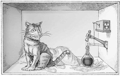 作为爱因斯坦的支持者,薛定谔提出了一个著名思想实验“薛定谔的猫”。实验设想将一只猫关在装有少量镭和氰化物的密闭容器里。镭的衰变存在几率,如果镭发生衰变,会触发机关打碎装有氰化物的瓶子,猫就会死;如果镭不发生衰变,猫就存活。根据量子力学理论,由于放射性的镭处于衰变和没有衰变两种状态的叠加,猫就处于死、活两种状态的叠加。也就是说,只要不去观察,这只猫就“又死又活”,这显然违背人们对世界的传统认知。薛定谔本想用这只猫来讽刺“哥本哈根学派的荒谬性”,然而让爱因斯坦和薛定谔都没有想到的是,后续的一系列物理实验基本都印证了哥本哈根学派的主张:宇宙在基本层面上,似乎真的具有某种内在的随机性。