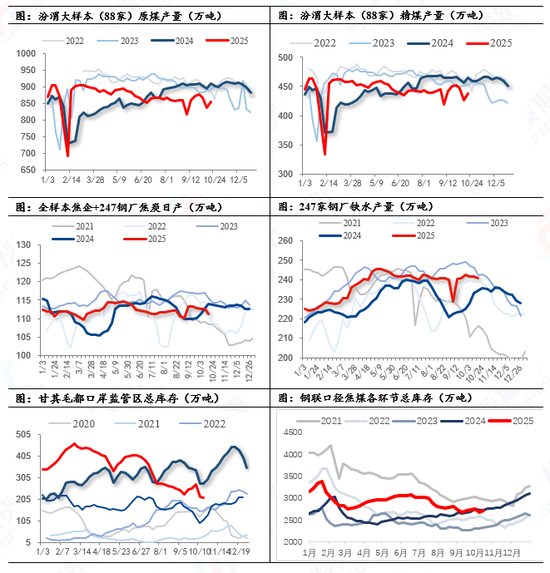 一般而言,进入11月份下游焦企和钢厂将开启冬储补库。根据钢联数据,247家样本钢厂铁水产量仍保持在240万吨/日左右的高位水平,全样本焦企加247家样本钢厂焦炭产量仍在110万吨/日以上,需求端有较强支撑。目前,由于需求端铁水高位持稳,焦煤市场驱动主要还是在供应端,下游焦企和钢厂主动补库需求将推动焦煤供需进一步向偏紧转变,焦煤价格仍有继续上涨的可能。