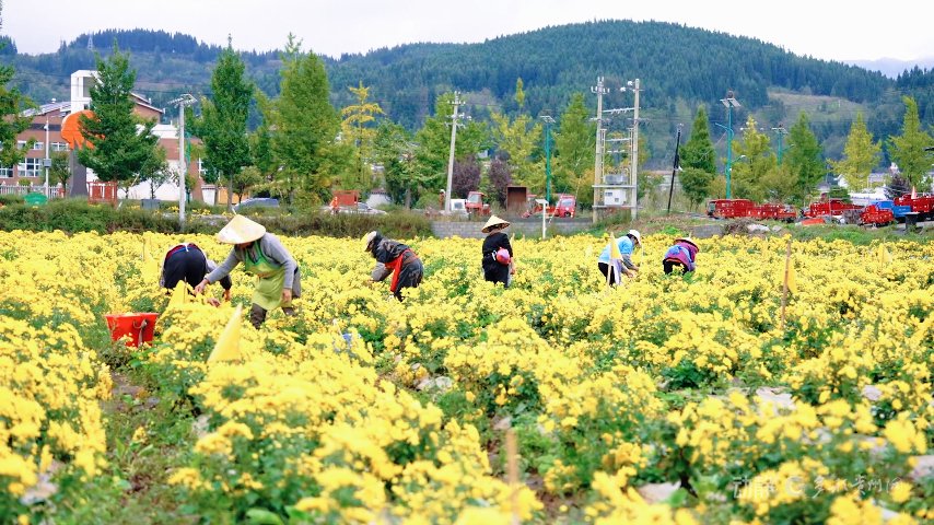 近日,贵州省六盘水市钟山区大湾镇种植的200余亩凤凰菊迎来丰收,绘就了一幅美丽乡村的动人画卷。