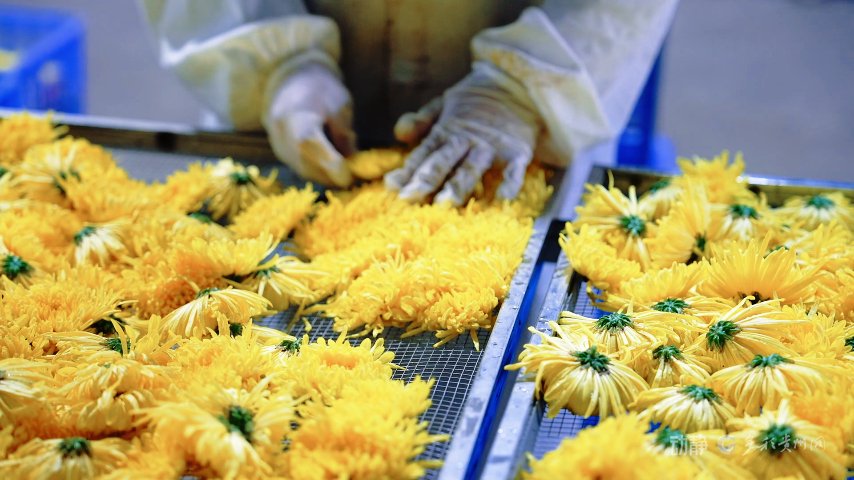 采回来的一朵朵“致富花”被送往不远处的标准化加工厂,经过严格的分拣、摆盘和长达100小时的精准温烘,最终根据大小定级。