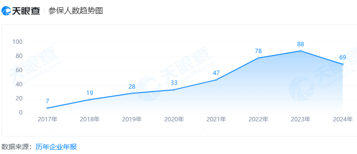 人员规模的变化更能直观体现公司经营压力。荣湃半导体的参保人数从 2017年成立初期的7人,逐步增长至 2023年的88人,呈稳步扩张态势;但2024年参保人数降至69人,减少的19人背后,是资金紧张导致的裁员或核心人员流失。