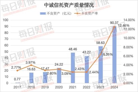 而在其他项目保持稳定或下降的时候,唯有信用减值损失增长幅度尤为之大,先是在2022年末之时才仅为3.74亿元,随后增长至2023年末的4.72亿元,2024年则是进一步暴涨至7.47亿元,这不仅意味着中诚信托可能加大了对特殊风险资产处置力度,风险防控压力依旧不小,也使其成为侵蚀盈利空间最为直接的影响因子。