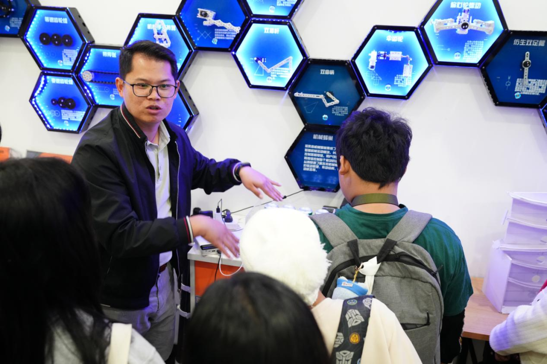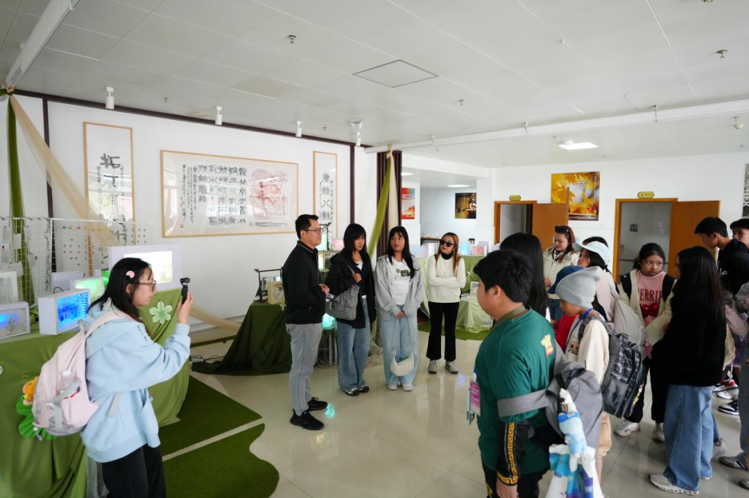 下午14时30分,交流活动在温馨的氛围中拉开帷幕。在刘彦池书记的引导下,泰国师生参观了拜师园、田汉园和叶侣梅美术馆。每到一处,刘彦池书记总是声情并茂地讲述中国传统文化或附中的历史故事,泰国师生纷纷驻足聆听,用心感受中华文化的深厚底蕴和附中独特的办学传统。随后,黄义强副主任陪同客人参观综合楼展厅,详细介绍我校科技与艺术素养教育成果。精美的学生作品和创新成果赢得了泰国师生的连连赞叹。