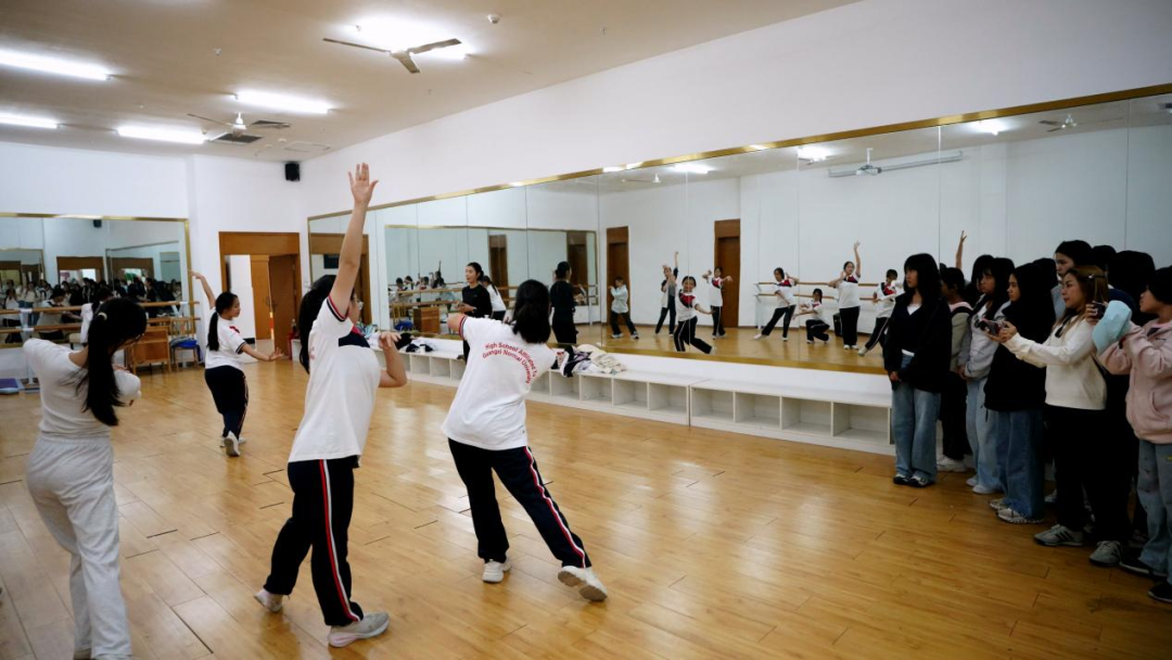 15时10分,泰国师生步入我校舞蹈教室。在舞蹈教室内,覃小烜老师指导的雅艺社团为远道而来的客人献上了优美的舞蹈表演。灵动的舞姿、传神的演绎,展现了附中学子良好的艺术素养,赢得了阵阵掌声。